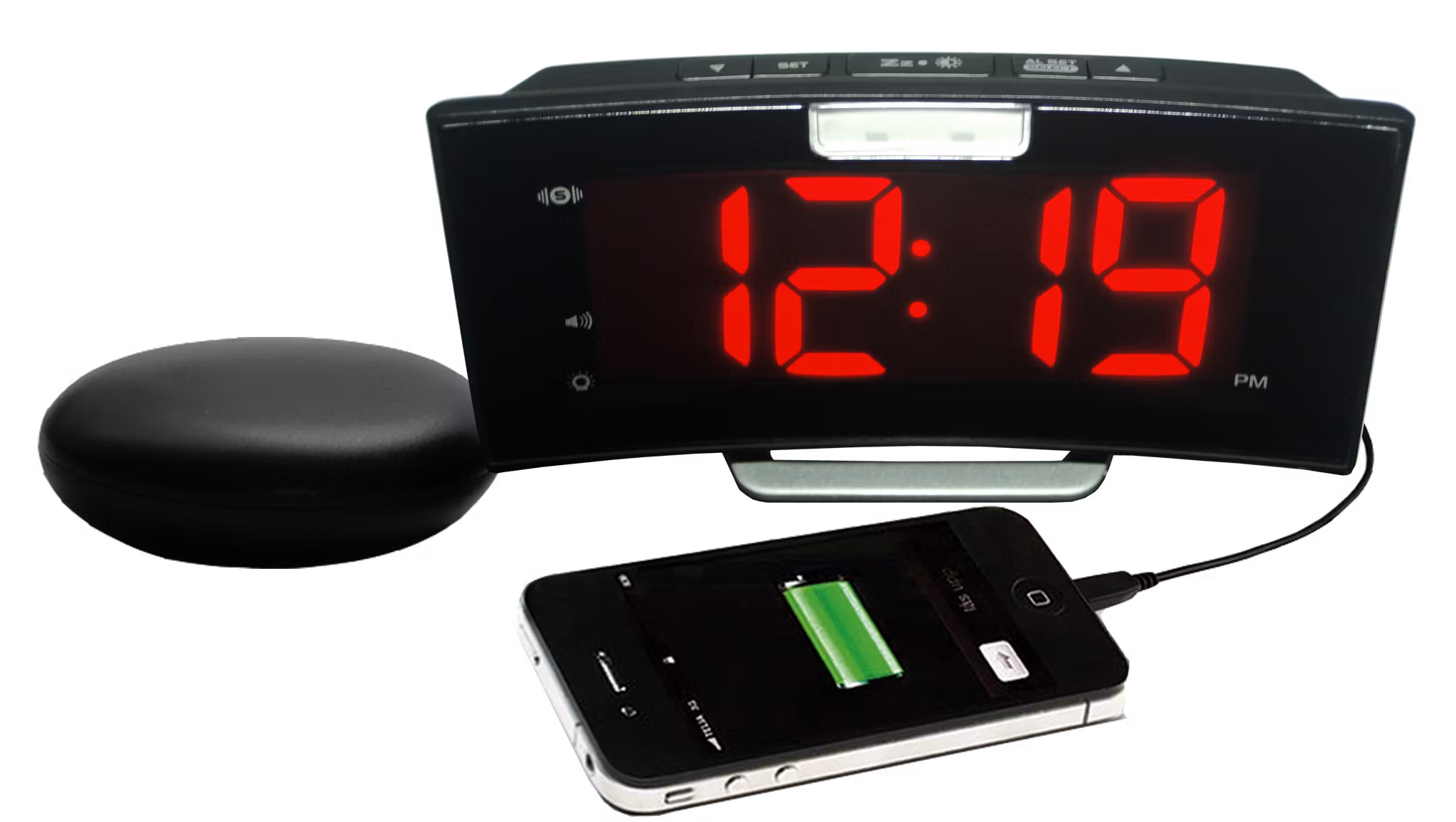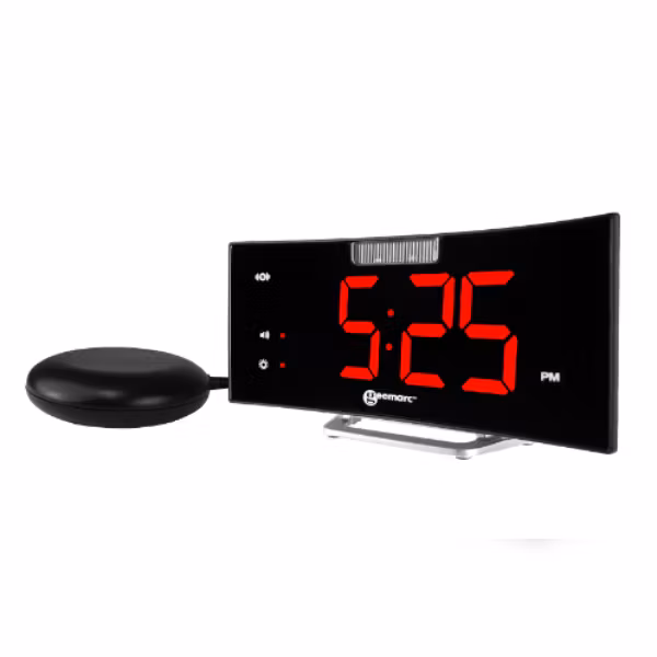 Digital väckarklocka med med tydlig display, starkt akustiskt alarm, blixtlampa samt kuddvibrator